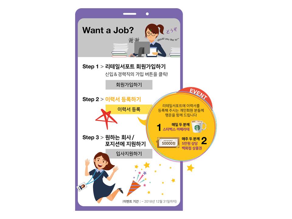 2018년 12월까지 리테일서포트에 이력서를 등록해주시는 개인회원 분들께 행운을 드립니다.