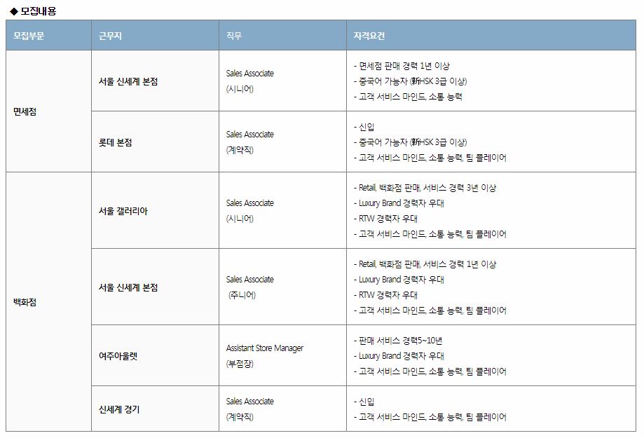 프랑스 명품브랜드 발렌시아가에서 명품직원을 모십니다.
