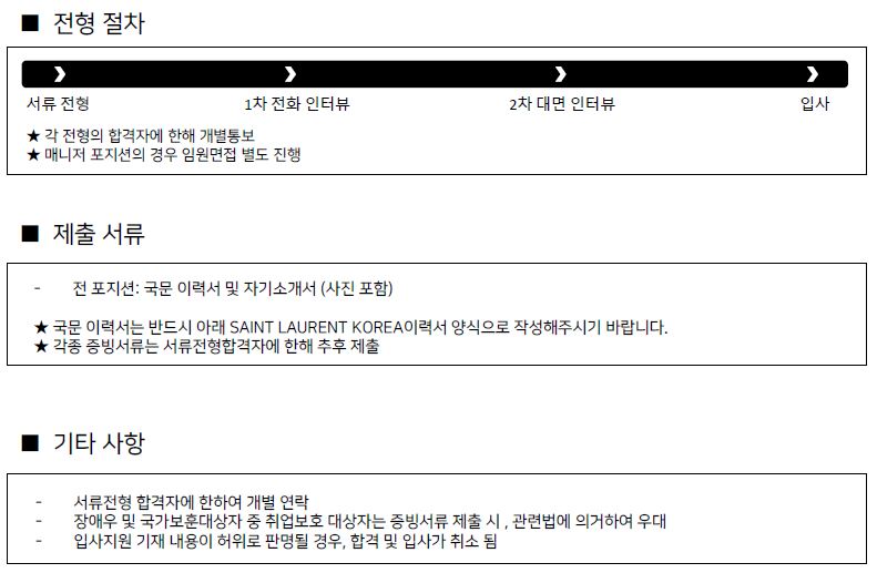 ko.yslhr@kr.ysl.com 로 자사양식 다운받아서 이메일 전송