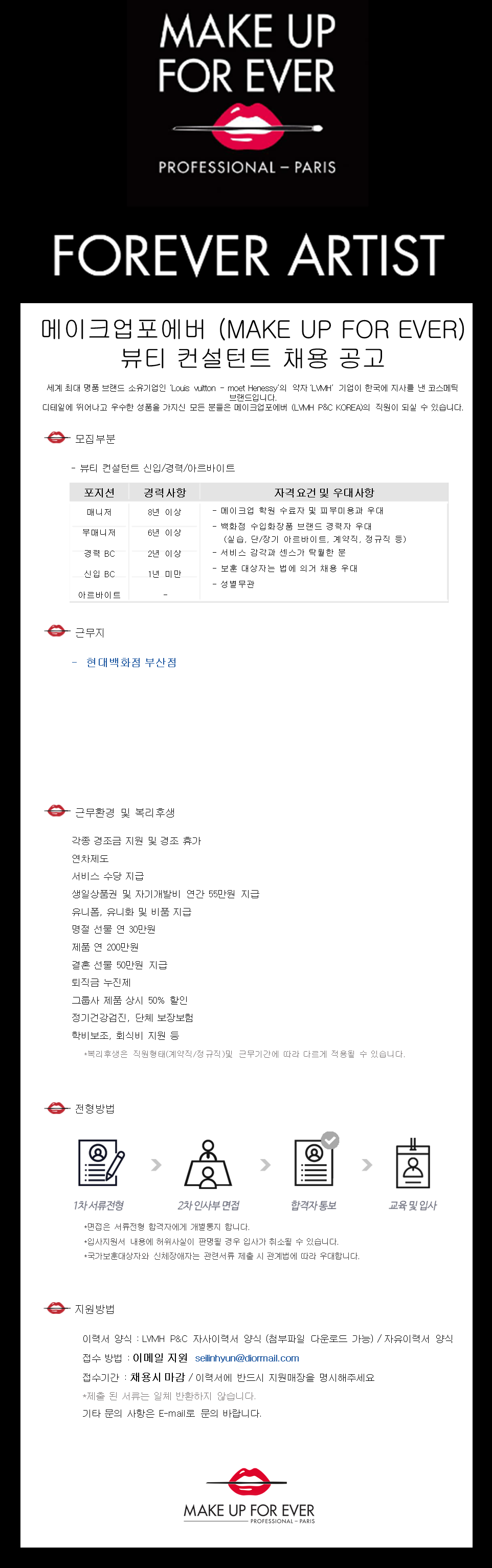 [메이크업포에버] 현대백화점 부산점 AB 채용
