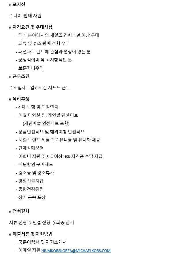 • 이메일 HR.MKORSKOREA@MICHAELKORS.COM