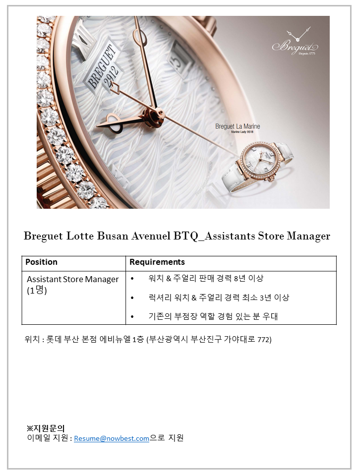 [Breguet] 브레게 롯데부산 에비뉴엘 부점장 모집